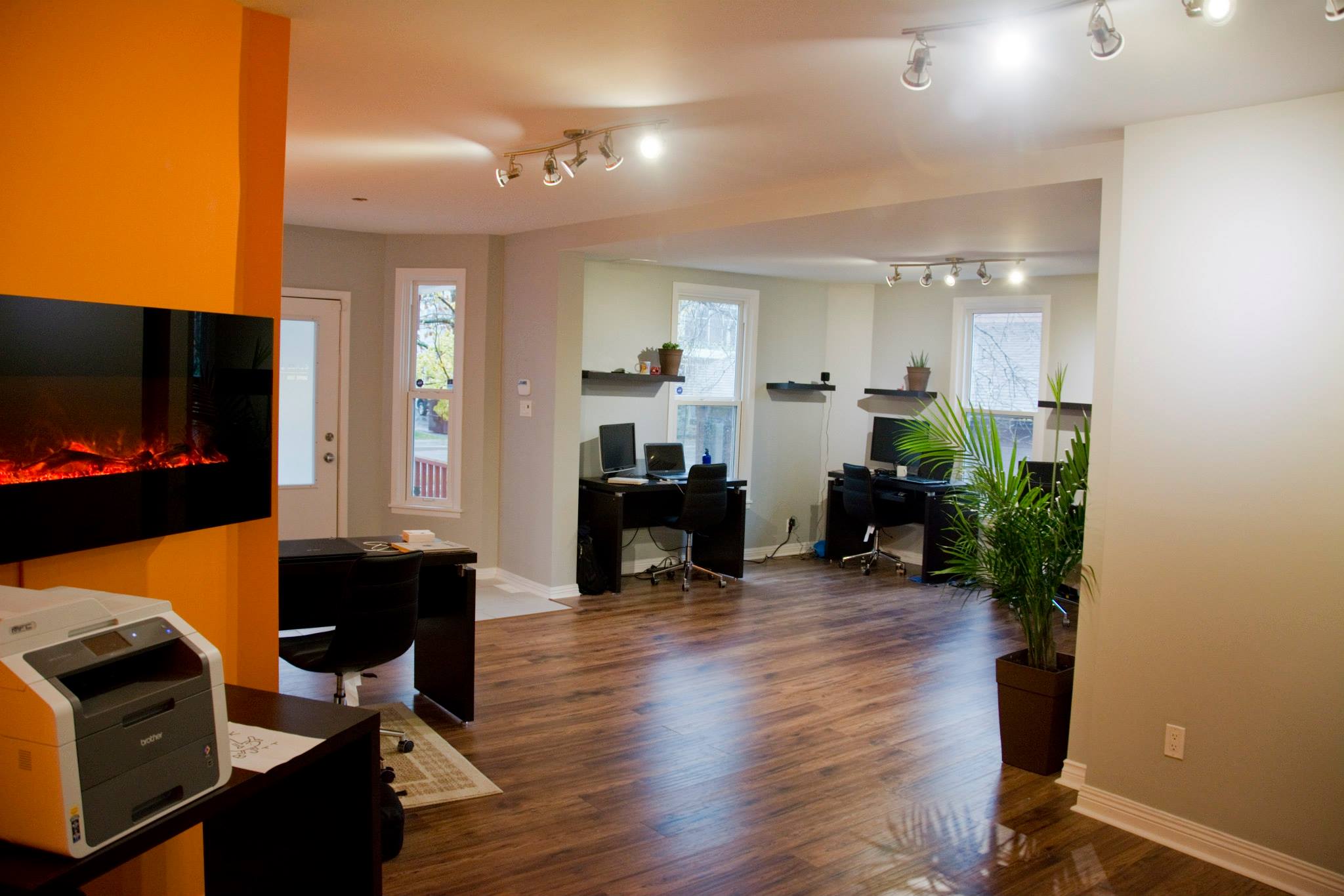 Complete renovation of the first floor of a 125 year old home on Cameron Street in Moncton. The house was being used as a hair salon and needed to be renovated to create an open-floor plan for a tech company.